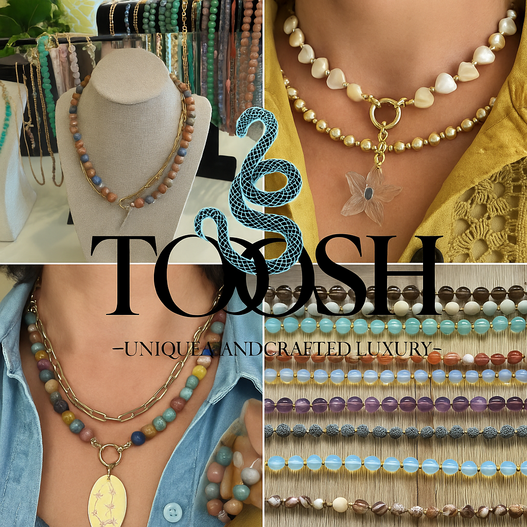 Handcrafted from semi-precious stones, each design reflects a life of movement, color, and quiet strength.