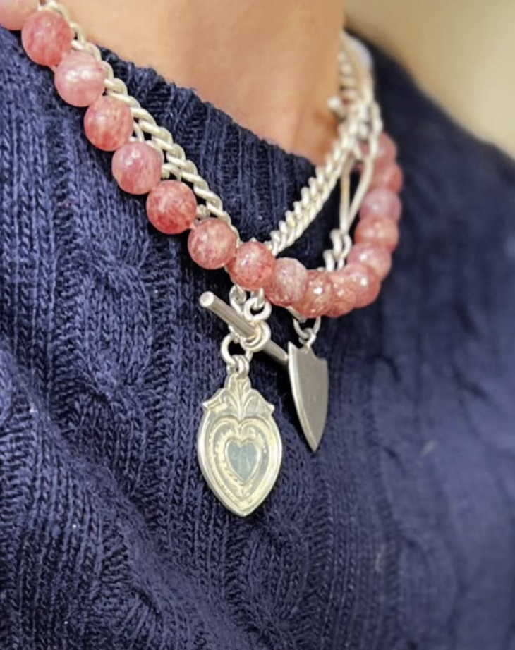 Strawberry Quartz Beaded Necklace: Gold-Filled Toggle, 19"